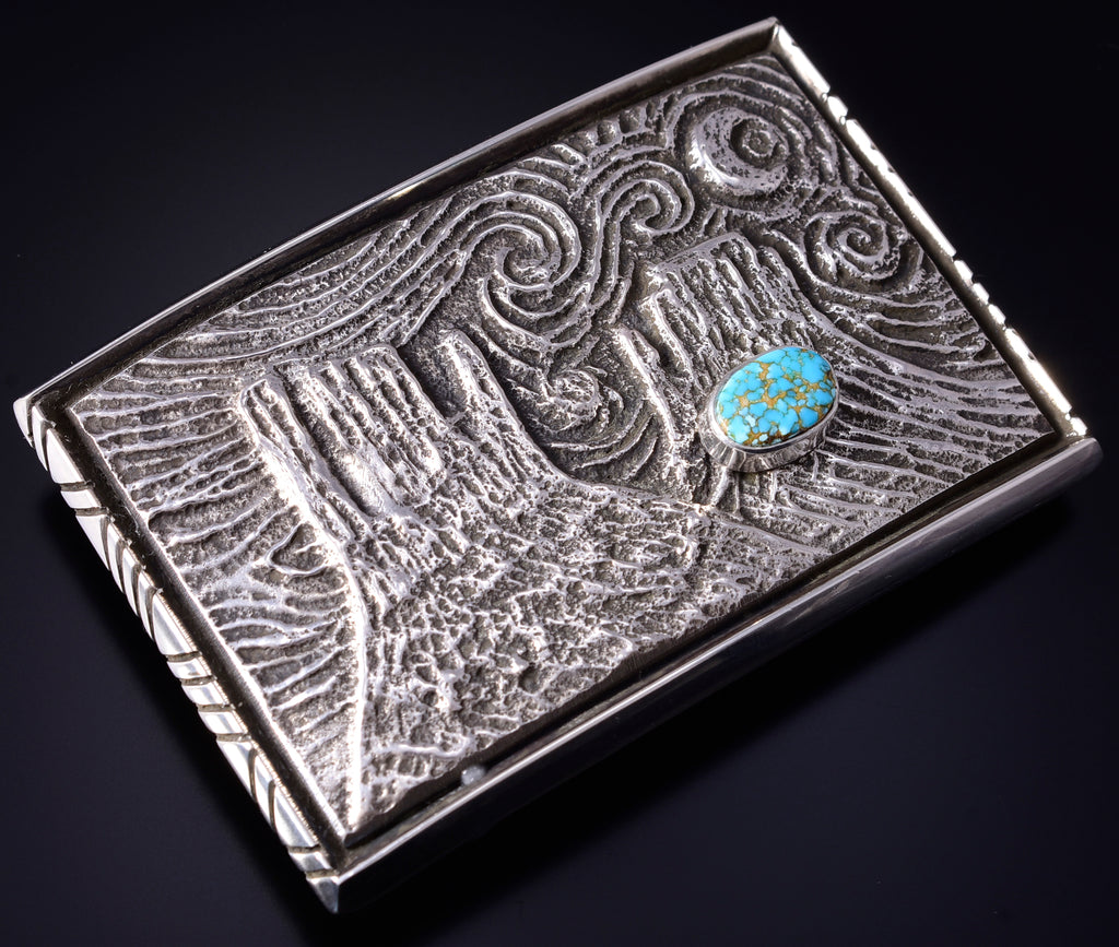 Silver & #8 Spiderweb Turquoise Tufacast Starry Morning Buckle Erick Begay 5H03V