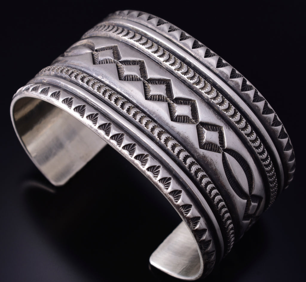Silver Navajo Handmade Concho Row Wide Bracelet by Erick Begay 5H01C