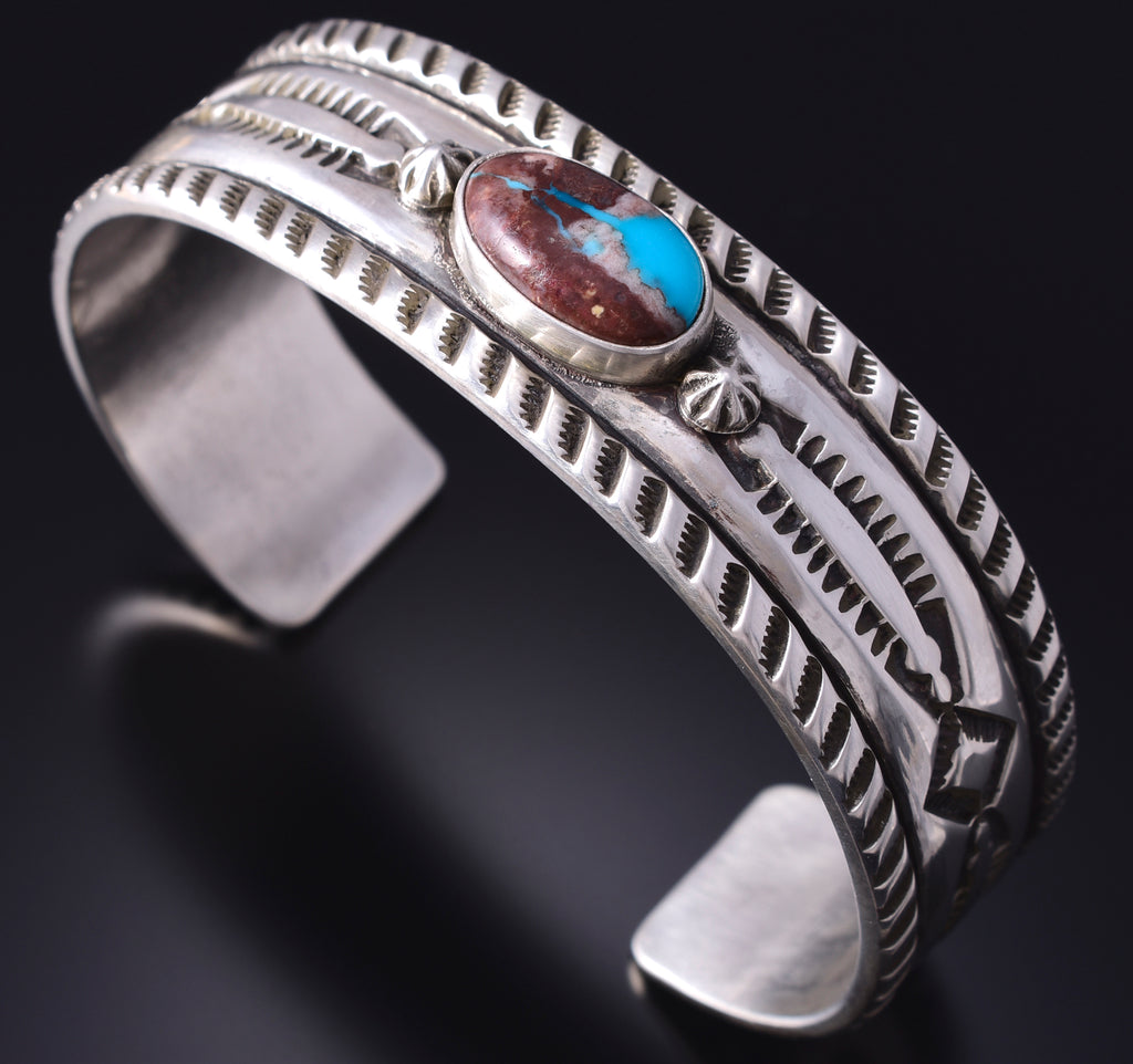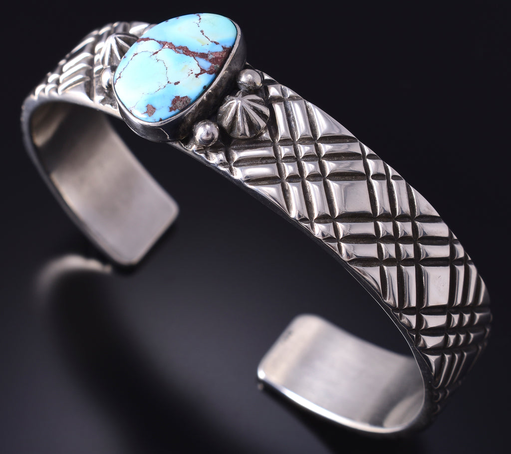 Silver & Bisbee Turquoise Navajo Handstamped Bracelet by Erick Begay 5H01F