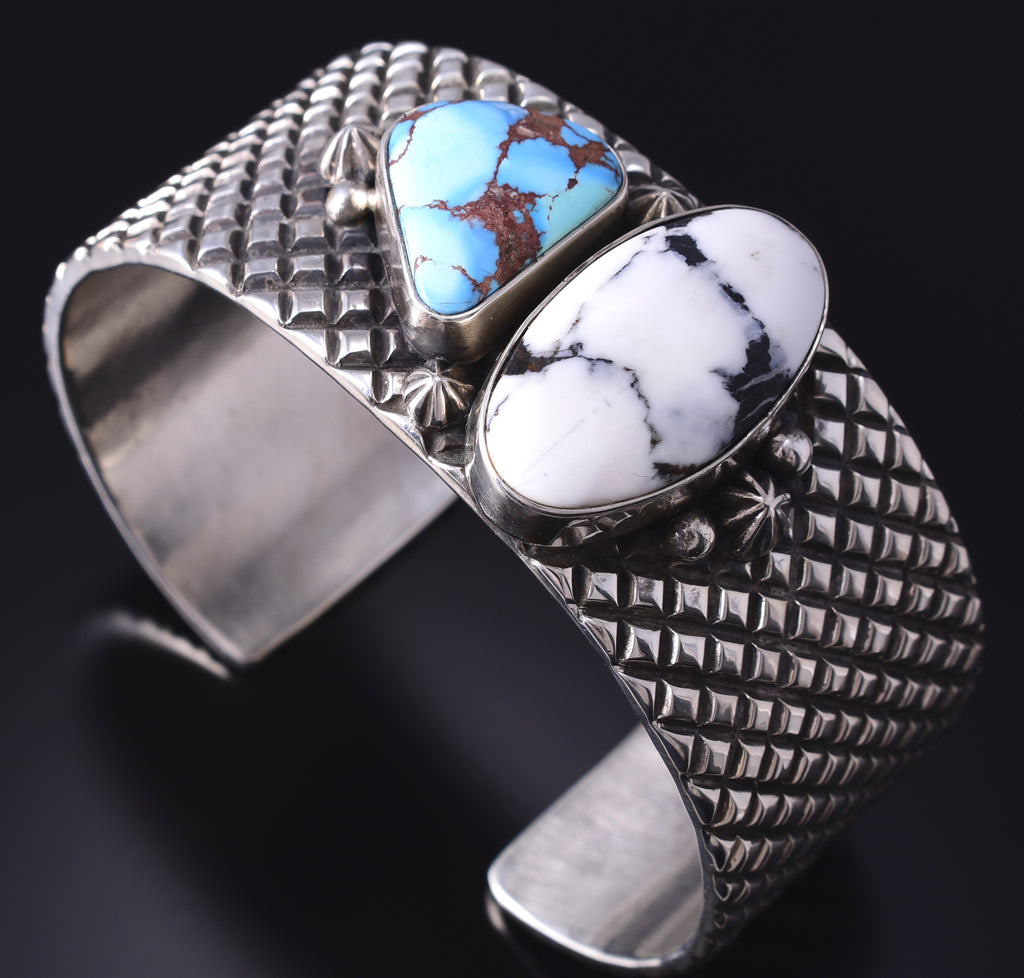 Silver & Golden Hills Turquoise /White Buffalo Navajo Bracelet Erick Begay 5H01D