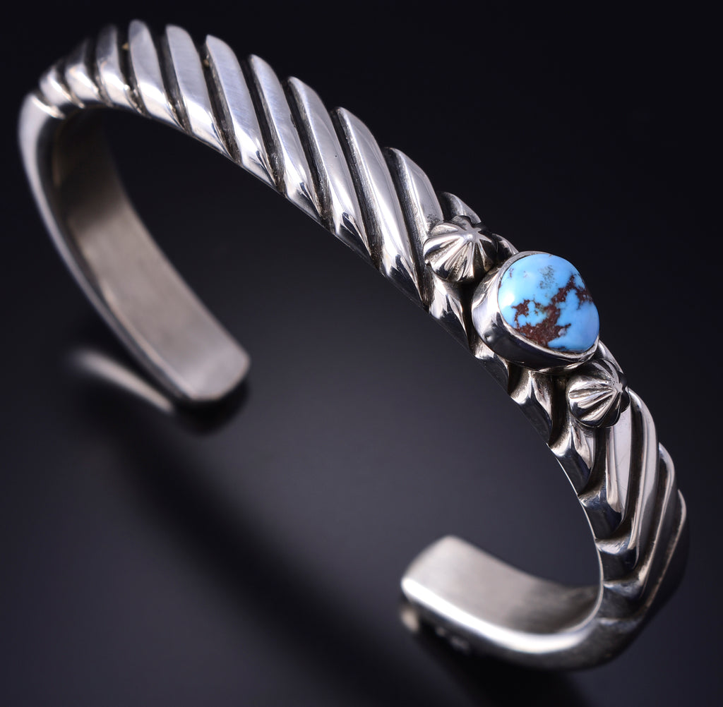 Silver & Golden Hills Turquoise Navajo Handmade Bracelet by Erick Begay 5H01J