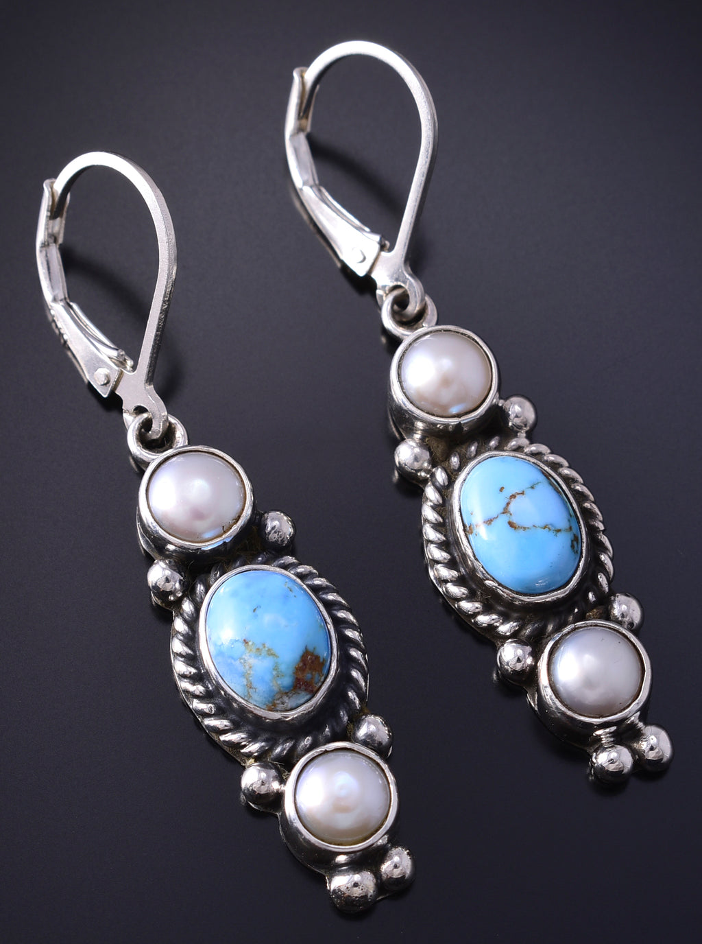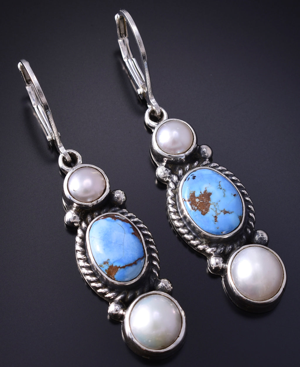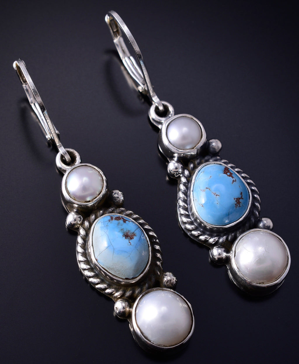 Silver & Golden Hills Turquoise Fresh Pearl Navajo Earrings by Erick Begay 5B25B