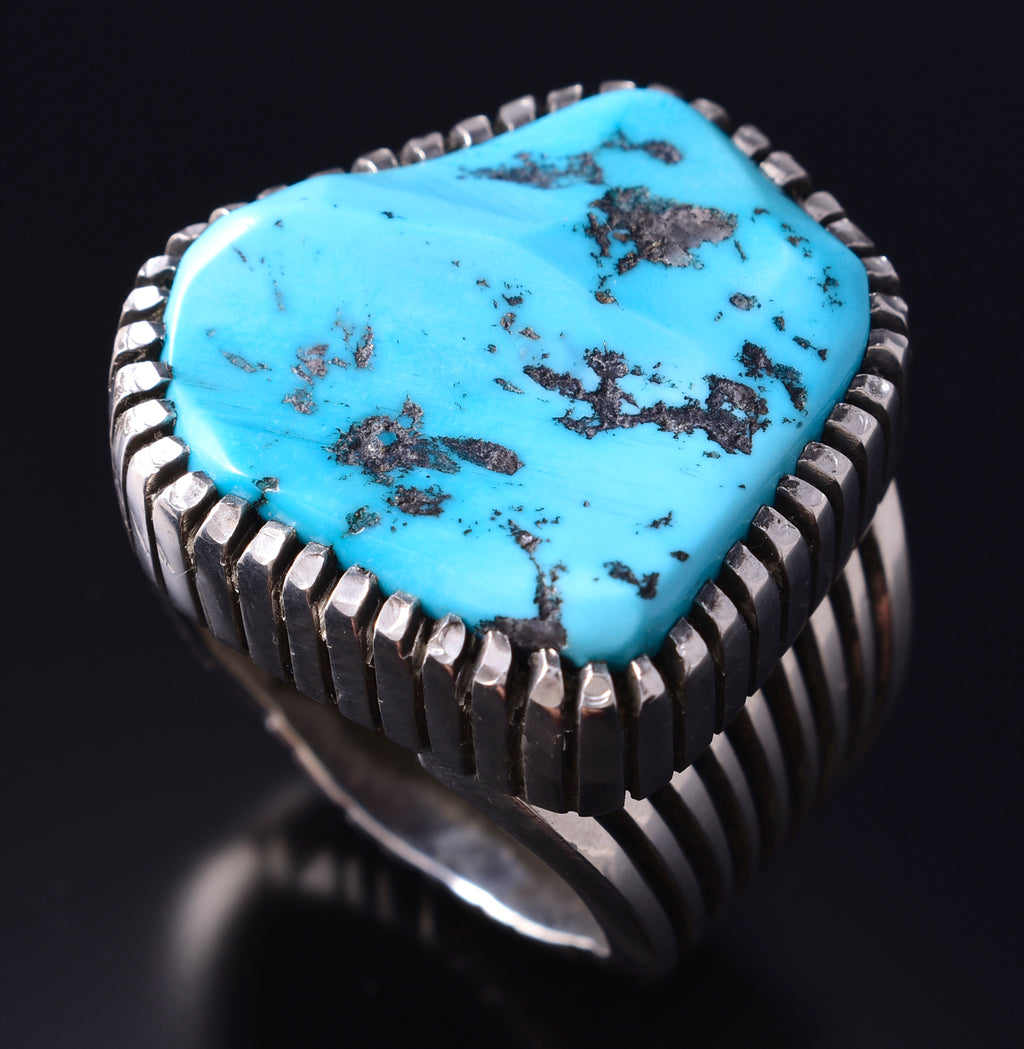 Size 12.5 Silver & Sleeping Beauty Turquoise Navajo Men's Ring Erick Begay 5H04E